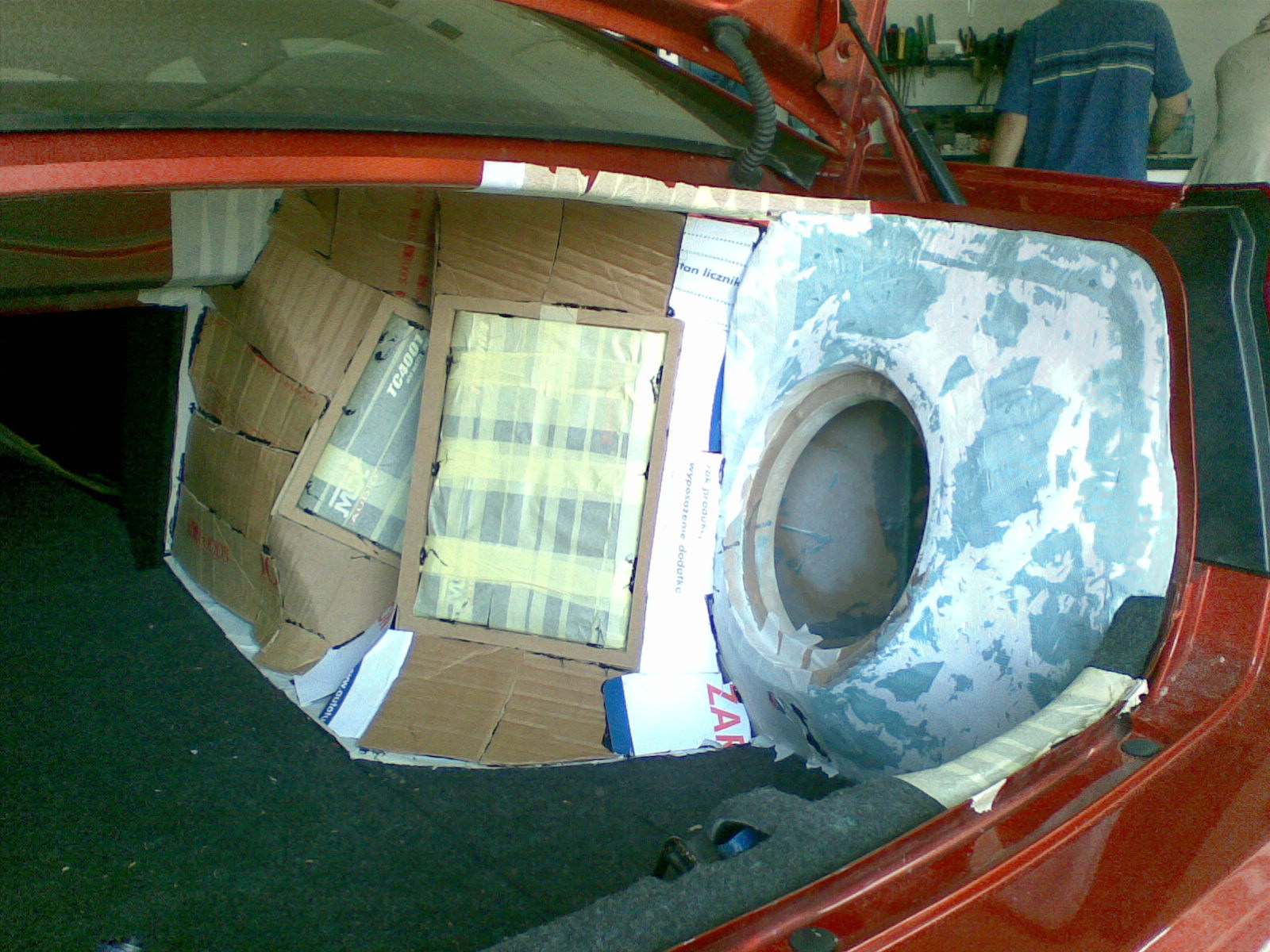 Na tą chwilę stanąłem na podłodze z mdfu 16mm w której ładnie wkomponowałem wzmacniacz...i od tego momentu zaczęły się większe lub mniejsze problem które dotyczą wykonania zabudowy z żywicy w boczku bagażnika.