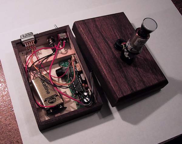 Obudowa użyta do tego projektu to ładnie wykończone drewniane pudełko. Przewidywalne było, iż niewiele osób zechce grać w taką grę, a zastosowanie mogłaby znaleźć w gabinecie okulistycznym. Dlatego też autor postarał się na estetyką wykonania, tak aby gotowe urządzenie mogło służyć jako eksponat na półce. Kineskop został umieszczony na elastycznej, gumowej uszczelce zapewniającej solidne i odporne na wstrząsy mechaniczne wsparcie.
