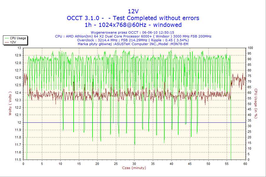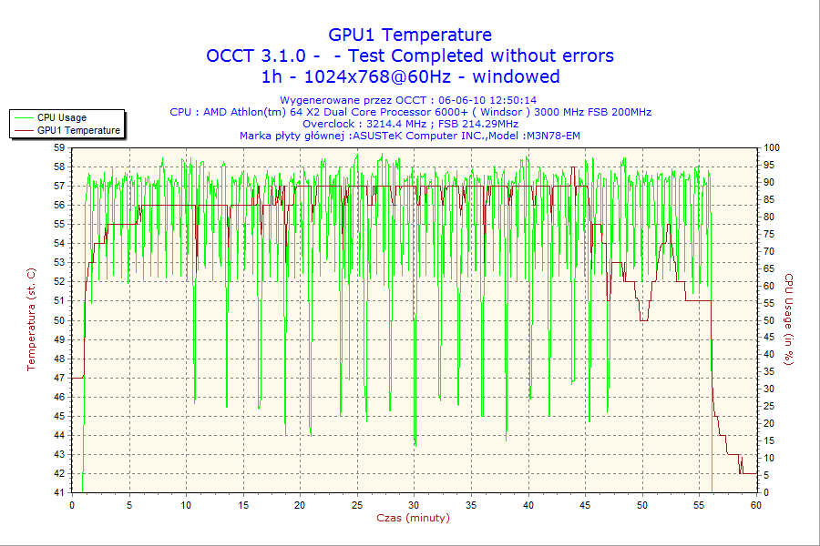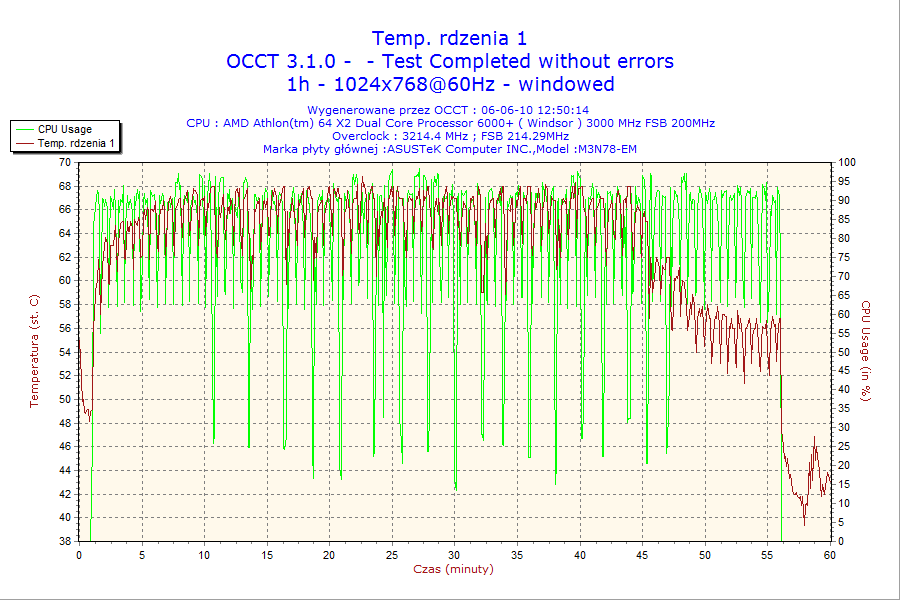 W ostatnich minutach OCCT ściągnąłem obudowę dlatego temp. spadła.