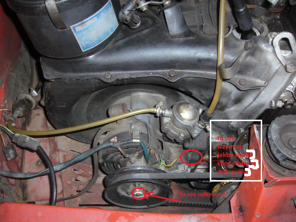 Śruby już wszystkie odkręciłem, pasek zdjąłem ale nadal nie moge alternatora wyjąć.