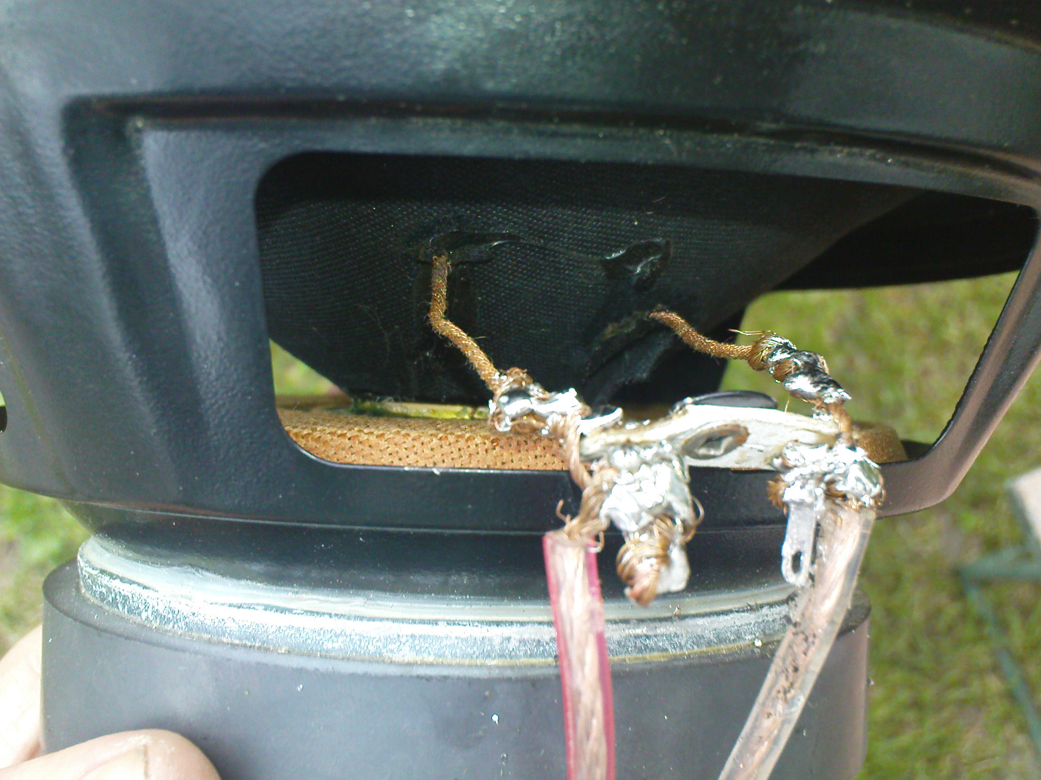 Wiem, że rozłączają się kabelki podczepione bezpośrednio do głośnika, nawet gdy przylutowałem je dokładnie, to nie dało efektu.. Podczas gdy przerywa to wystarczy lekko pociągnąć kable biegnące od głośnika żeby zadziałała..