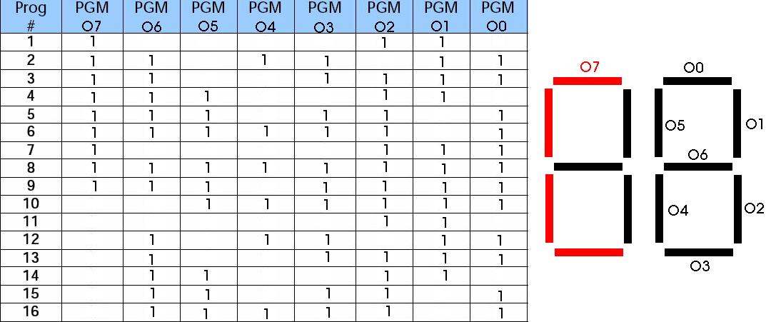 Kompletnie nie znam sie na programowaniu i nawet nie za bardzo wiem od czego zaczac ale sciagnalem z neta jakas demonstracje napisana przez kogos majaca tlumaczyc kod ASCII na 16 segmentowy. Pomyslalem, ze powinno byc proste zmienic przyporzadkowanie kodu ASCII do konkretnych znakow podmieniajac im to co ma wystapic na wyjsciu pamieci - bo wlasnie tak chce to zbudowac... Wgrac w pamiec EEPROM taki maly wsad ktory by mi przetlumaczyl konkretne stany na wejsciach adresowych na inne ale na wyjsciach. Po jakims czasie wymalowalem cos takiego: