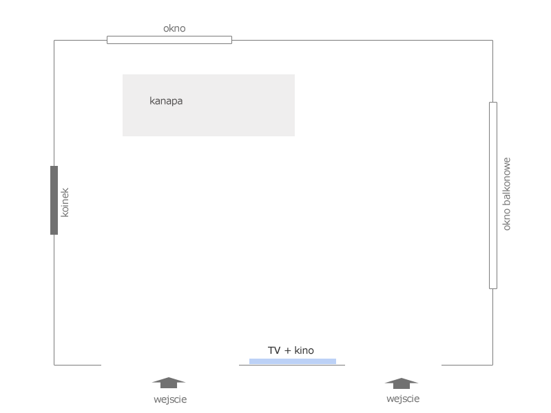 Drugie pytanie - w jaki sposób zaproponowaliście rozstawienie tego zestawu w pomieszczeniu jakie pokazuje załącznik. Otwory w ścianach i kanapa już się nie zmienią (ich położenie).