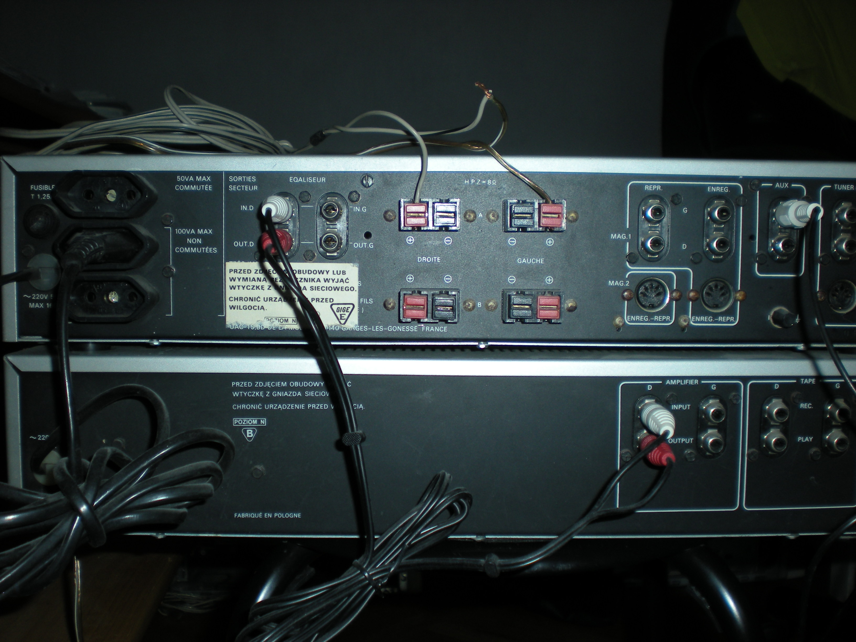 mam pytanie i zarazem prośbę. mam amplituner (tak jest napisane na nim) "dynamic speaker SA 950" i do niego podłączoną jak dotychczas jedną kolumnę Jamo studio 180. Mam też drugą taką samą kolumnę i chciałem ją podłączyć bo wkurzało mnie że tak tylko stoi a nie gra (nie była podłączone wcześniej bo spaliły się średnio i wysokotonowe głośniki). na wzmacniaczu mam możliwość podłączenia 4 kolumn. i tu pojawia się problem bo kiedy podpinam drugą kolumnę nie ważne czy na kanał lewy czy prawy czy do przodu czy do tyłu i nie wiem jeszcze w jakiej konfiguracji to za cholerę nie chcę grać (przełączam kanał lewy prawy na panelu frontowym, włączam oba) dopiero przypadkiem kiedy zwarły mi się kable (złączyły dwie masy ze sobą, nawet nie są wpięte do amplitunera) zaczęły grać obie kolumny ale tylko na jednym kanale,ale i tak z przodu oba muszą być włączone bo inaczej gra tylko jeden, i tu pytanie czy może tak być , czy nic się nie stanie nie spali kanał czy coś podobnego. dołączam zdjęcie dla rozjaśnienia mniej więcej jak to jest połączone.