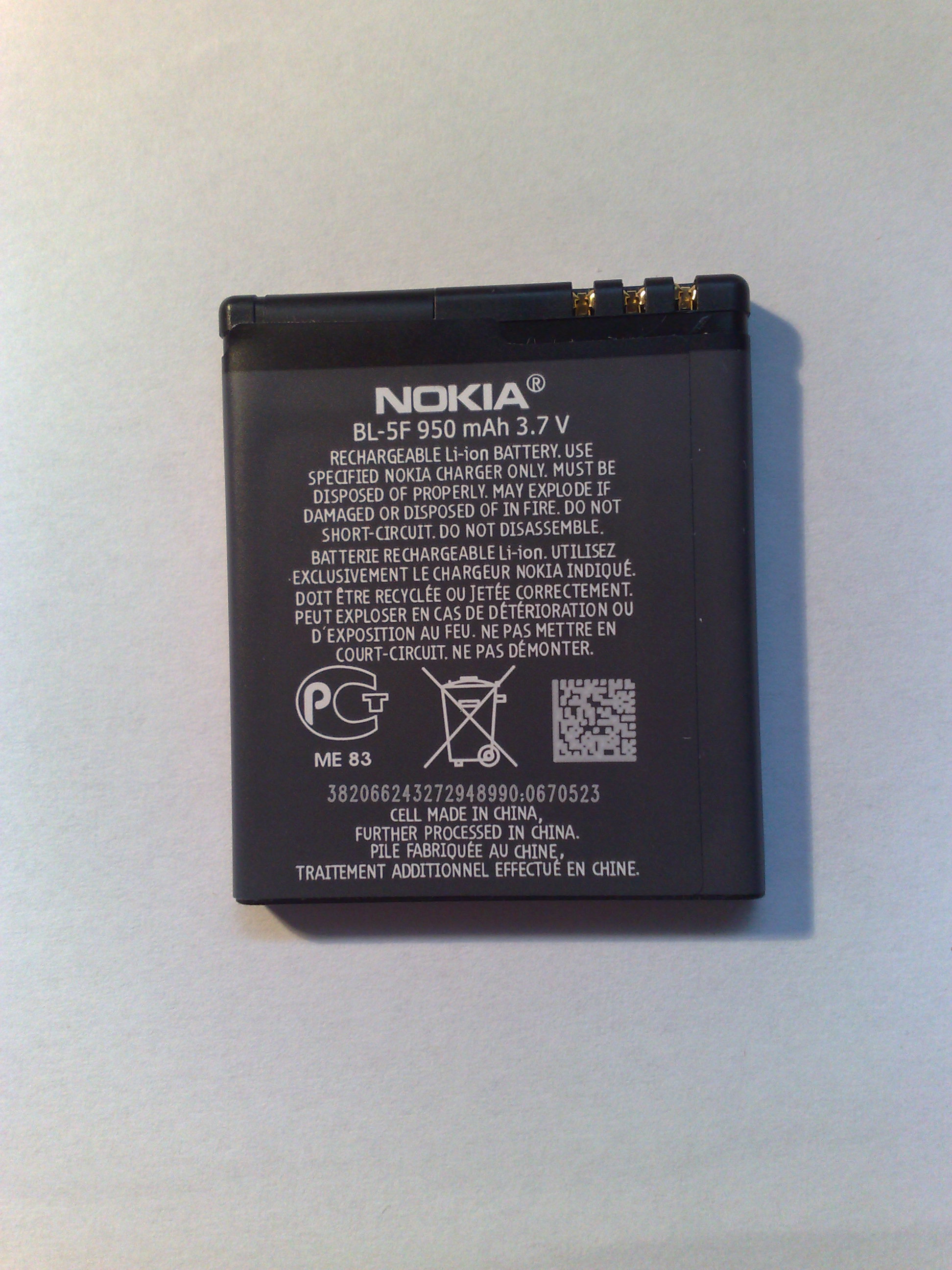 Problem dotyczy baterii BL-5F, którą kupiłem rzekomo oryginalną, chciałbym żeby ktoś ocenił czy rzeczywiście taka jest. Odwiedziłem autoryzowany punkt Nokia Care, pani porównała tą baterię z oryginałem który mieli na stanie, stwierdziła że jest to oryginał, lecz nie mam nadal 100% pewności, a za dokładną ekspertyzę baterii trzeba zapłacić 80zł, a sama bateria kosztowała 49,99zł. Dodam tylko, że na oryginalnej ładowarce bateria nie chce się ładować, a na zamienniku ładowarki jest wszystko dobrze.