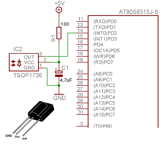 cały czas sprawdza czy jest obecność promieniowania IR jezeli tak to: czeka 10ms i znów sprawdza, jeżeli nie ma już promieniowania to znaczy że był to sygnał 1 jeżeli sygrał się utrzymuje to znaczy że jest to sygnał dalszy itd...