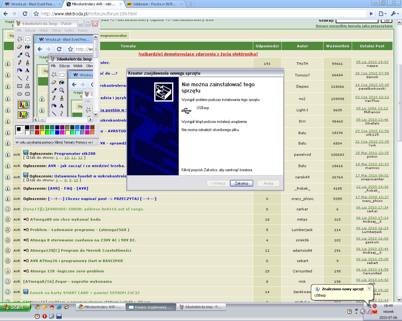 #1 8267067 06 Lip 2010 18:54 carkar carkar Poziom 15 #1 8267067 06 Lip 2010 18:54 Mam problem ze sterownikiem do USBasp. Pomóżcie!!