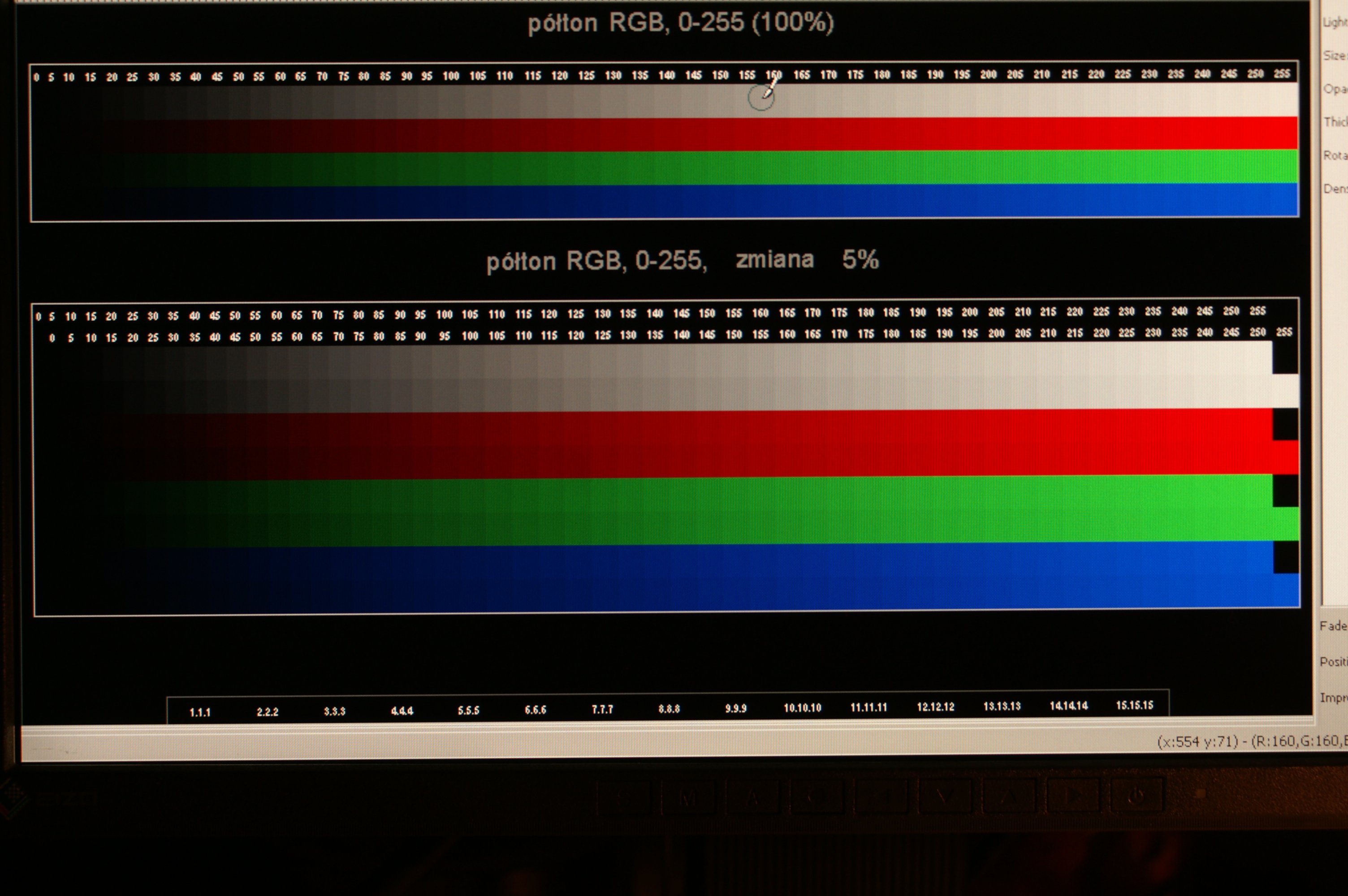 Posiadam dwa monitory LCD firmy EIZO model FlexScan L768 z czego jeden z nich miał zbitą matrycę a sprawną elektronikę tak więc na allegro udało mi się kupić odpowiedni model prawie identyczny lecz miał wpięty inny kabel LVDS lecz po odpięciu go i wpięciu monitora na kablu z inną końcówką pasującą do płyty w monitorze podpiąłem matrycę uruchomiłem i niby działa lecz coś jest nie tak a mianowicie paleta kolorów RGB B&W odcienie dziwnie są wyświetlane coś tak jak by efekt podobny do zmiany jakości kolorów z 32 bitów na np 16 lub 8 bitów gdzie widać przejścia pomiędzy odcieniami kolorów.