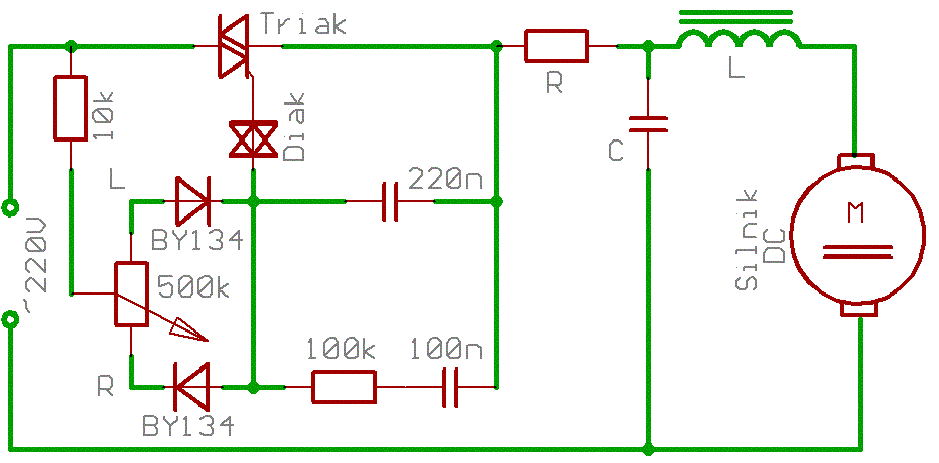 nieco zmienić schemat, dodać kondensator o dużej pojemności na samym silniku, wtedy