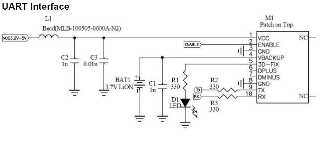 Moduł GPS podłączyłem zgodnie ze schematem z data sheetu: