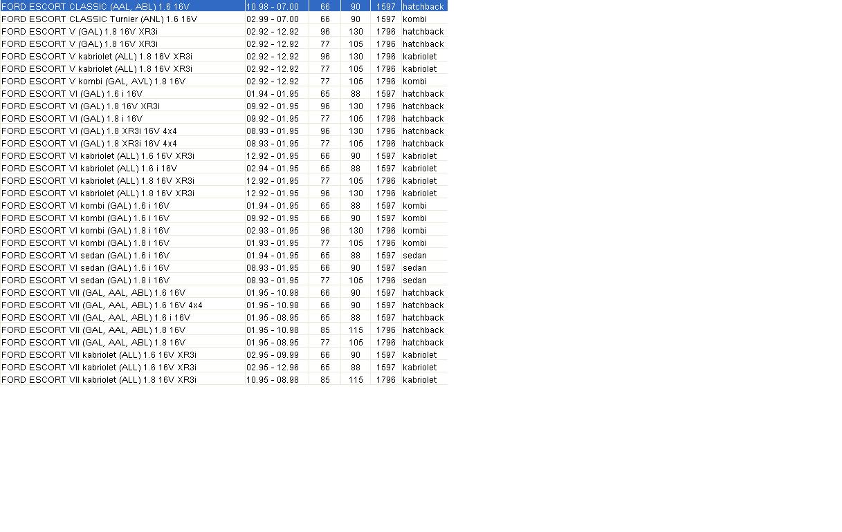 Posiadam Ford'a Escort'a 1.6 16v 94r