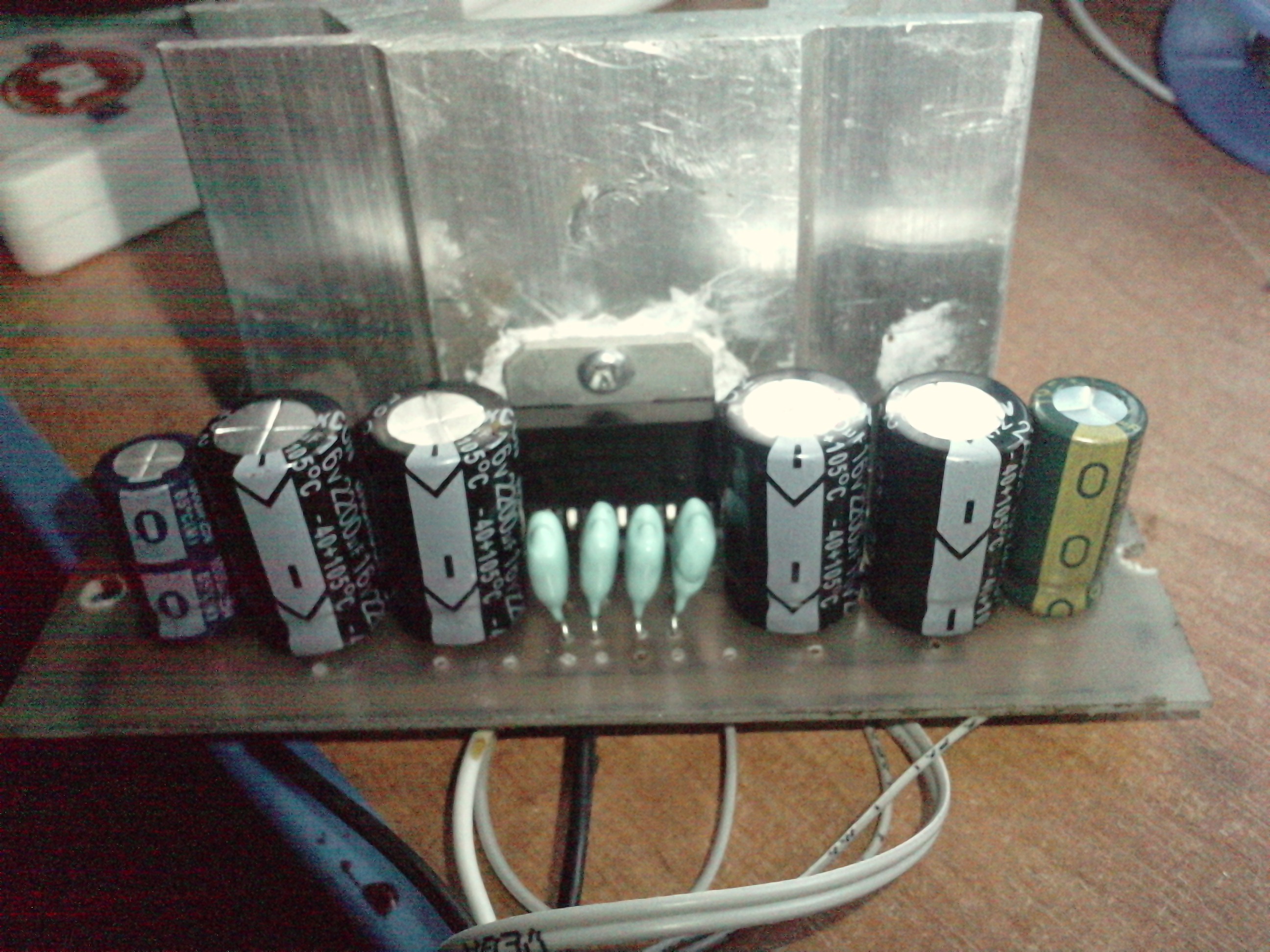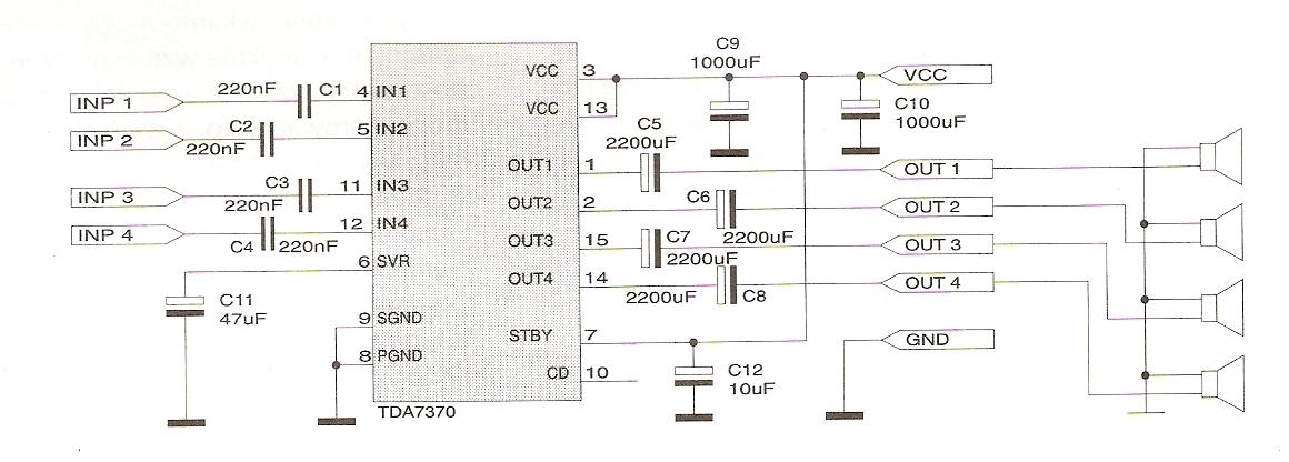 #1 8340242 28 Lip 2010 17:35 mati8222 mati8222 Poziom 10 #1 8340242 28 Lip 2010 17:35 Witam Zrobiłem wzmacniacz na kość TDA7370 i gdy podłączam go do zasilania to z głośników nie wydobywa się żądny dźwięk Układ zasilany jest napięciem DC 12v na wejściu są ekranowe przewody Oto schemat układu i płytka z elementami: