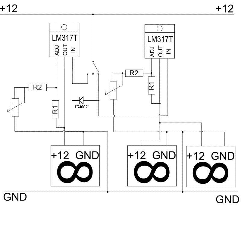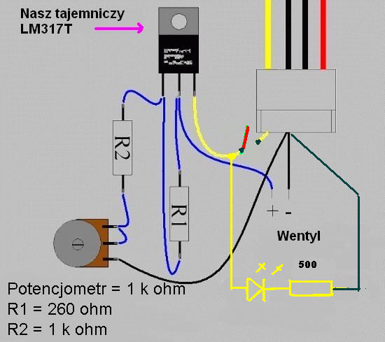 z gory zaznaczam ze jestem poczatkujacy w tej dziedzinie. Postanowilem wykonac regulator obrotow wentylatora oparty na ukladzie scalonym LM317T na podstawie https://obrazki.elektroda.pl/45_1237317120.jpg. Przestudiowalem tematy odnosnie ukladu na elektrodzie oraz innych stronach internetowych. Wykonalem bez problemu uklad dla jednego wentylatora, ktory dzialal.