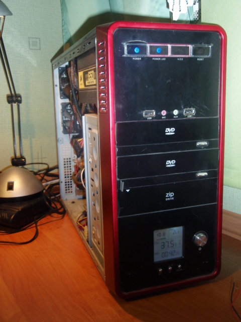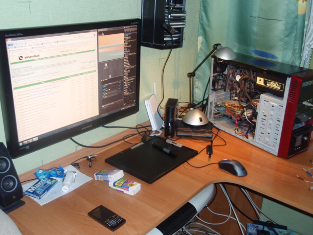 Moje centrum dowodzenia. Buda stoi obok okna (stroną płyty głównej)