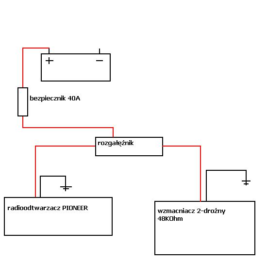 2. między rozgałęźnikiem a radiem na okablowaniu Pioneera jest jeszcze bezpiecznik 10A na kablu żółtym (Battery).