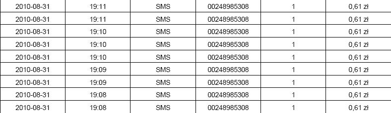 Co się okazuje z bilingu 10 dni wcześniej tez zostały wysłane 3 razy smsy na ten numer prawie o tej samej godzinie