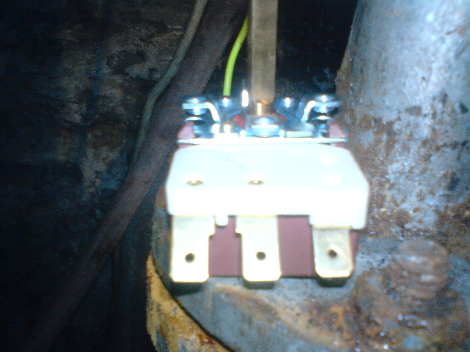 Łączy się szeregowo grzałkę, termostat czyli regulator temperatury z pokrętłem i wyłącznik termiczny bezpieczeństwa przylegający od spodu do dna bojlera. Równolegle do grzałki montujemy neonówkę 230 V wskazującą obecność napięcia na grzałce i to wszystko.