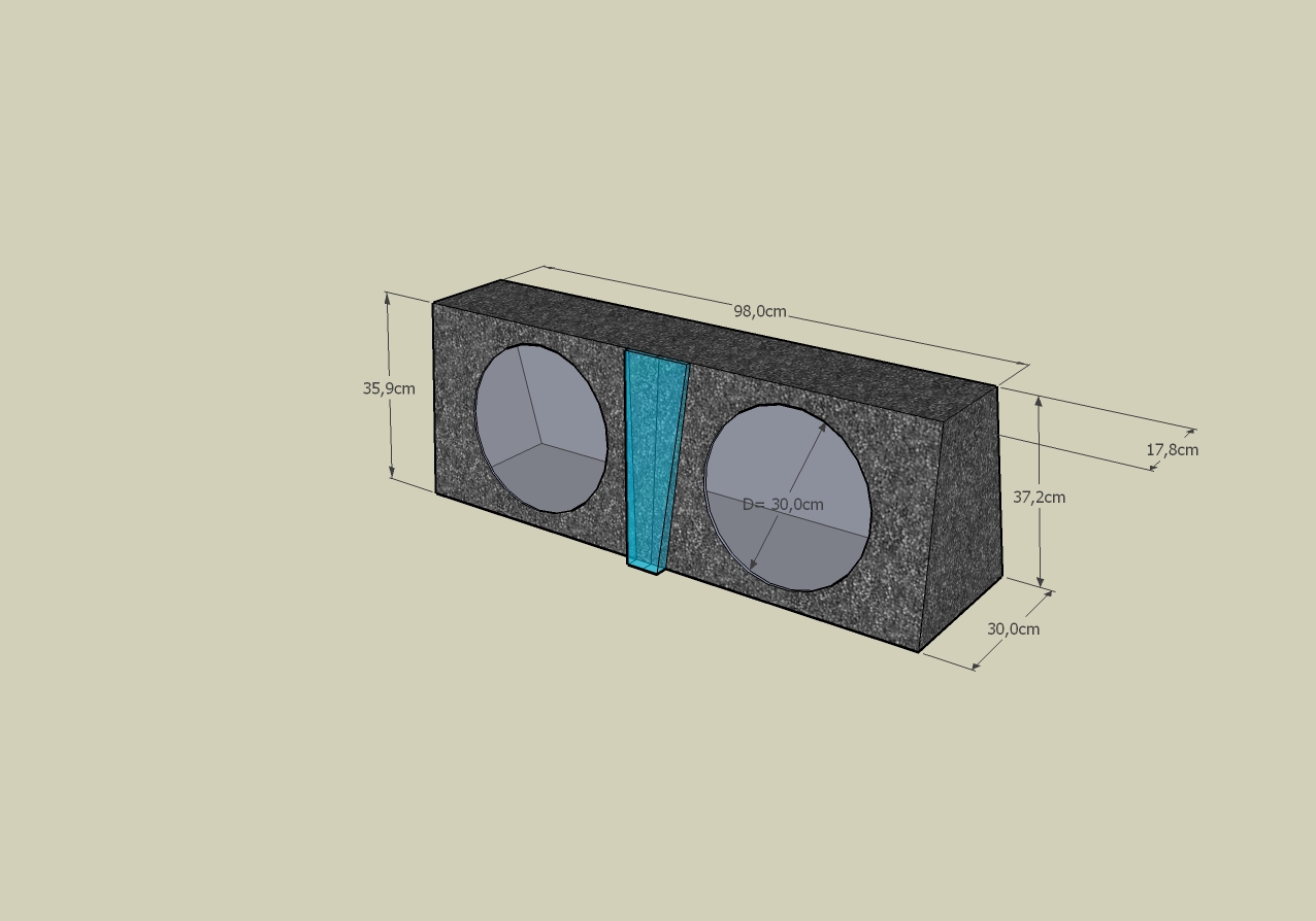 Witam składam właśnie zestaw 2xpeiying 300f2 zasilane wzmakem magnat 1000w edition four moc podawana na głośniki to 150wrms na jeden czyli 1/2 mocy głośnika skrzynia ma 69L czyli 34,5L na jeden głośnik (wiem ze za mała ale wyczytałem ze ludzie stosują tak małe skrzynie i efekt jest zadowalający przy BR) a wiec moje pytanie to jak obliczyć długość i średnice br bo korzystając z tego oto wzoru Lv = (23562,5*A^2) / (Fb^2*C) - (0,73*A) wyszło mi ze tunel br przy średnicy 8cm musiał by mieć 46,13cm gdzie głębokość skrzyni to 30cm ??? czy mógłby mi ktos pomóc w doborze tunelu BR