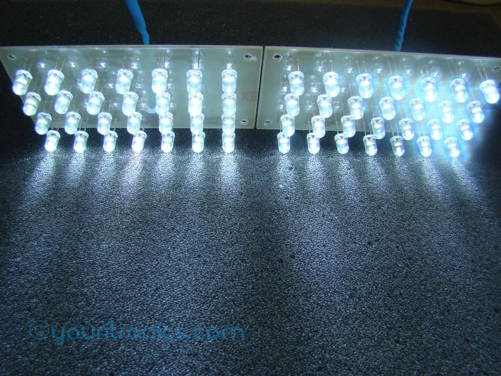 Autor pisze, iż przy projektowaniu układu skorzystał z noty aplikacyjnej układu TPS54232, a także że konieczne było obliczenie wartości rezystora sprzężenia zwrotnego dla tych konkretnych "pakietów" diod LED. Oczywiście taki rezystor powinien być większej mocy. Konwerter DC-DC posiada wyprowadzenie EN do włączenia blokady podnapięciowej, ale autor nie zdecydował się tego użyć. Po uruchomieniu urządzenia diody LED świeciły wystarczająco jasno, a sam konwerter nie sprawiał żadnych problemów. Autor zaleca dokładne podłączenie przewodów do urządzenia, ponieważ przy niedokładnym podłączeniu, może popłynąć niższy prąd. Ponieważ układ miał pracować na zewnątrz autor pokrył ścieżki na płytce PCB klejem, aby zapobiec korozji, jak na zdjęciu.