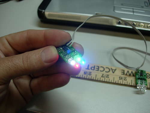 Moduły LED są sterowane z komputera za pomocą RS232, które jest przekształcane na poziom TTL. Jak pisze autor kod źródłowy dla PIC12F609 jest dość skomplikowany i zajmuje wszystkie 64 bajty pamięci. Używa 100% pamięci RAM i 97% pamięci flash. Komunikacja z każdym modułem odbywa się poprzez 8-bajtowe pakiety danych. Każdy taki pakiet zawiera sumę kontrolną. Cały kod źródłowy został napisany w C. Każdy moduł otrzymuje i dekoduje cały pakiet danych, nawet jeśli nie jest przeznaczony dla niego.
