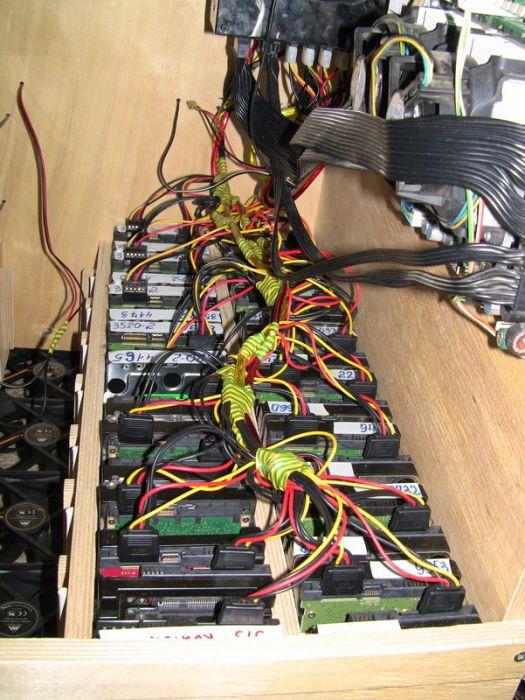 W erze materiałów HD i coraz większej ilości danych potrzeba coraz więcej pojemności. Jeden z użytkowników doszedł do wniosku, że potrzeba mu aż 70 TB pojemności. Przeliczając na szybko, taka pojemność starczy na 24 miliony piosenek lub 70,000 filmów DVD. Całość składa się między innymi z 40 wentylatorów i 60 dysków. Więcej w źródle.
