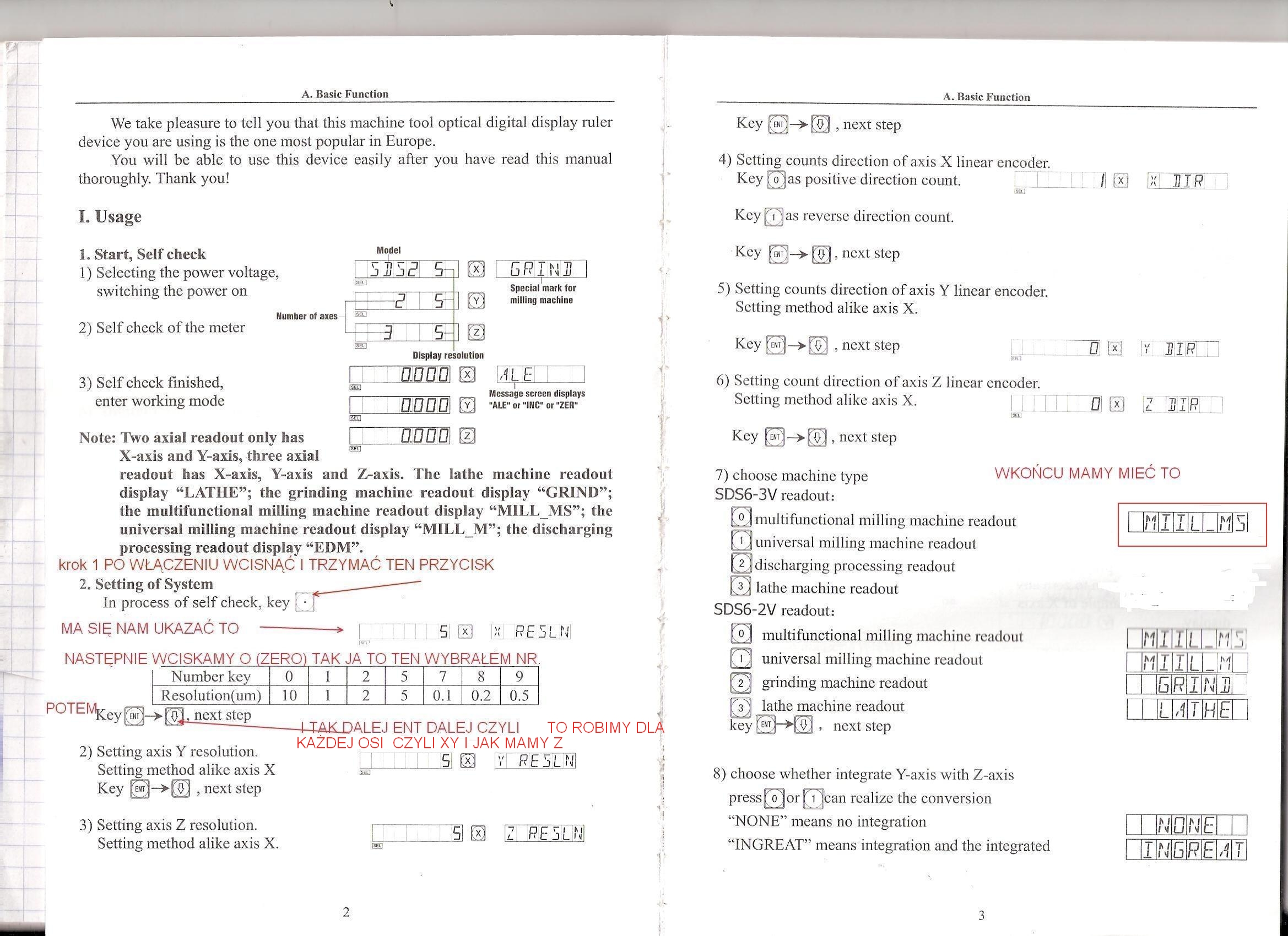 Czytnik o symbolu SDS6, instrukcja w języku angielskim i po podłączeniu go do sieci i liniałów po przejechaniu stołu 10mm pokazuje mi 5mm oczywiscie ustawione mam milimetry nie wiem jak to ustawić.