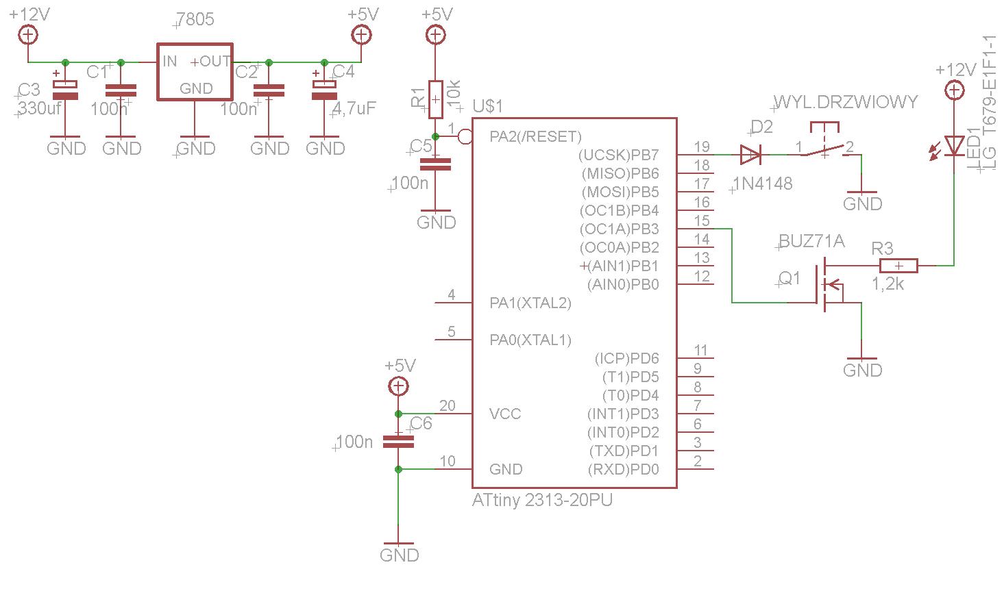 Napisałem taki program, który ma płynnie wygaszać lampkę oświetlenia wnętrza samochodu po rozwarciu krańcówki w drzwiach, i płynnie rozjaśniać gdy krańcówka poda masę.