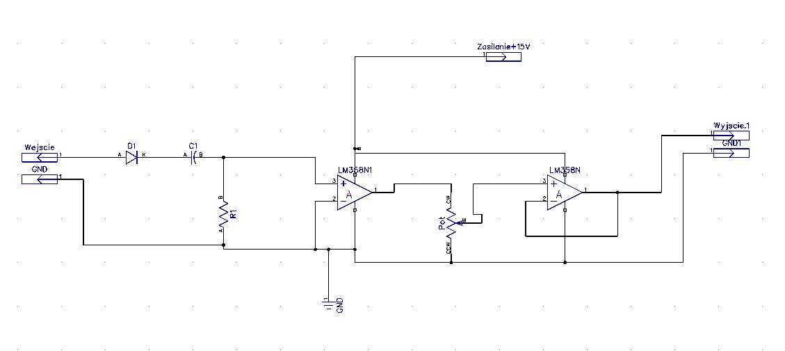 Ale niestety nie działa to za dobrze, nie mam zbyt wielkiej wiedzę w wzmacniaczach operacyjnych ale teoretycznie powinno to działać. Proszę wiec o podpowiedz jak by to zrobic najlepiej na 1 układzie Lm358N
