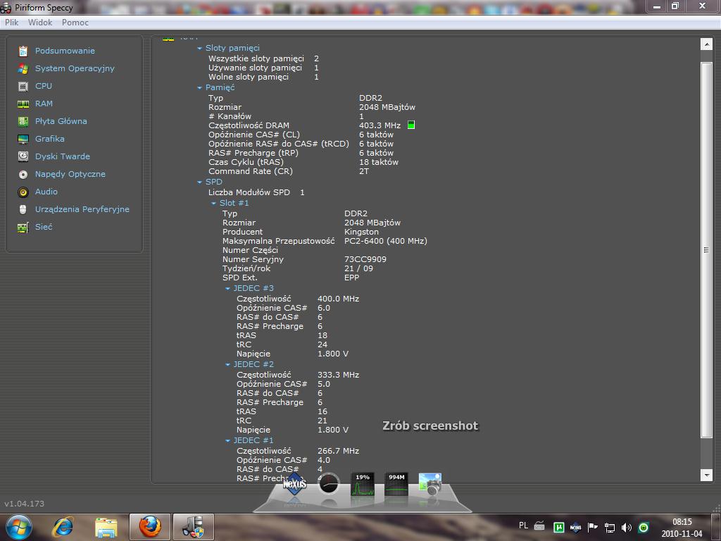 Pamięć ram : 2.0GB 1-Kanałowy DDR2