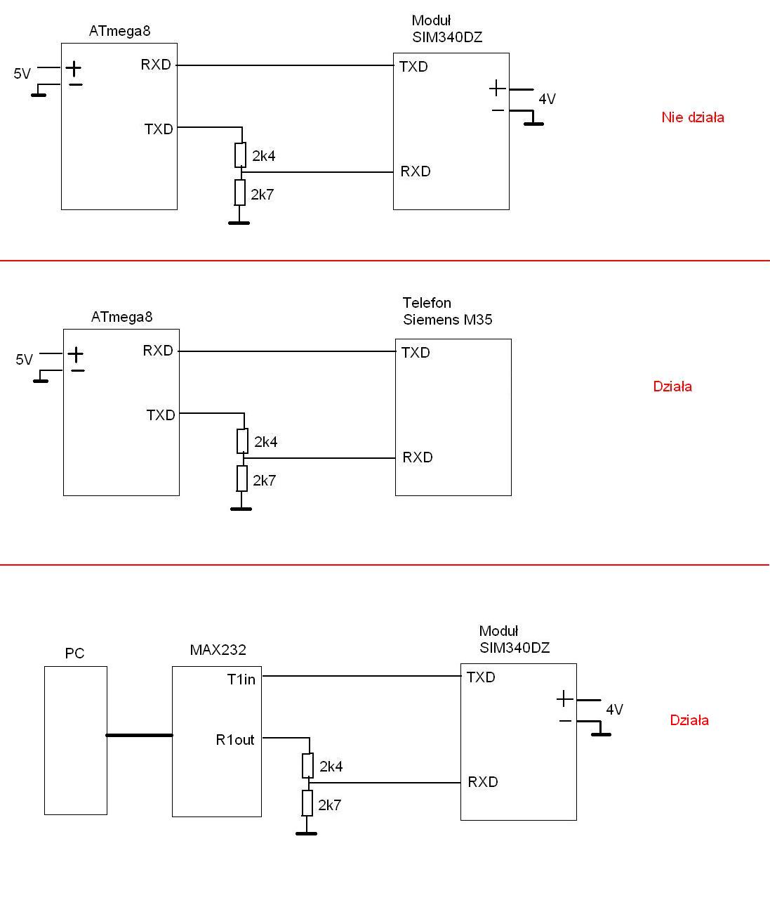 3) Komunikacja pomiędzy AVR a modułem SIM340 nie działa