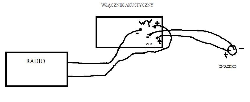 Moim problemem jest to, że gdy podłączyłem ten włącznik do radia (rozcinając jego kabel sieciowy) to wszystko było ok. Podłączenie to przedstawiłem na rysunku poniżej