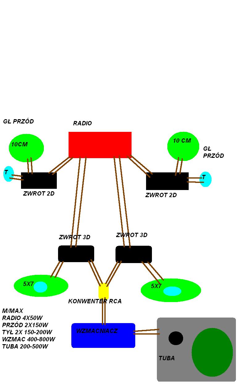 Wyjścia ze zwrotnic wysokotonowe R i L podpinam do konwertera który ma wyjście RCA pod wzmacniacz no i tu już idzie tuba do wzmacniacza, będzie to grać?