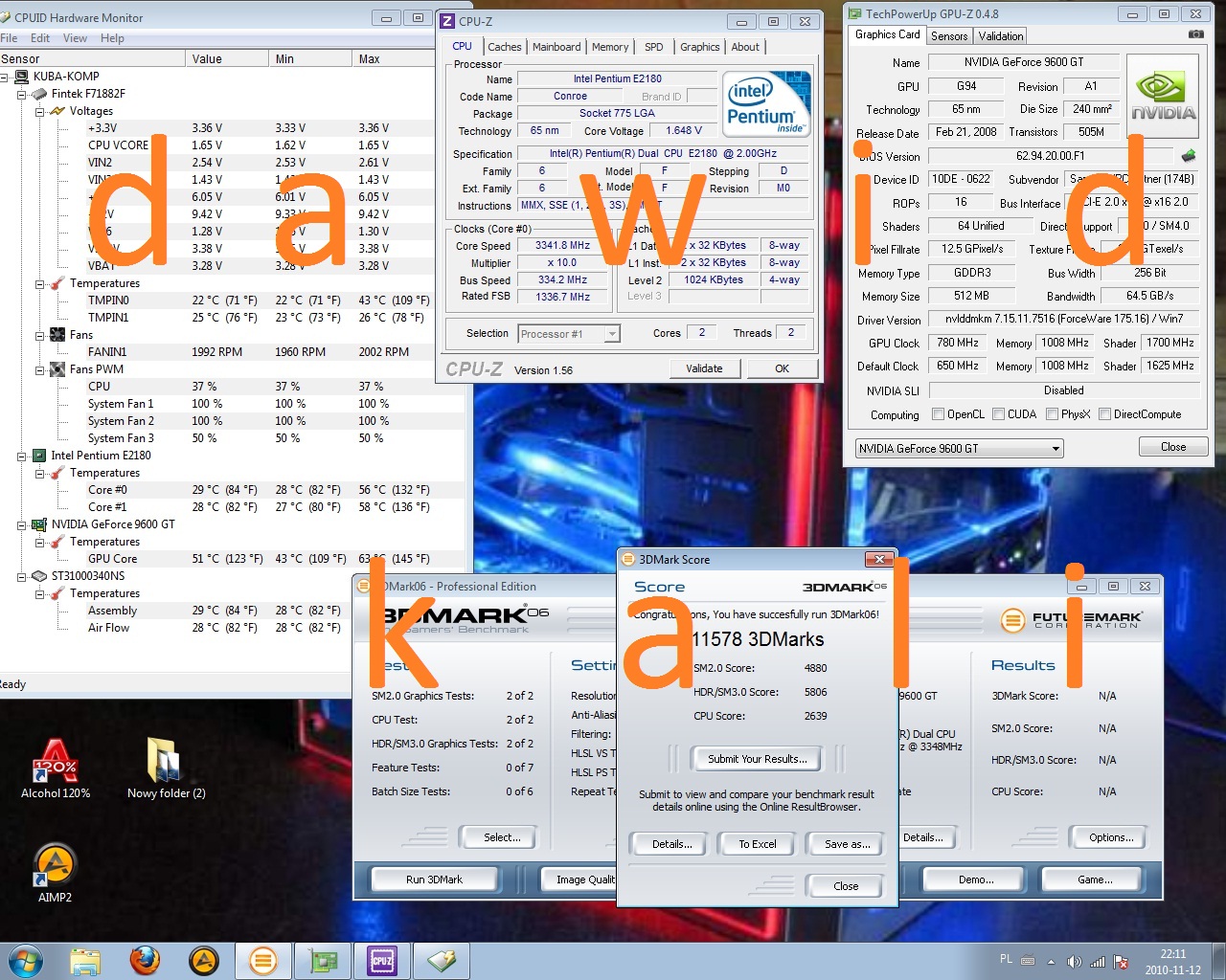 natomiast dane grafiki 650/1625/900 MHz podkręcona do 780/1700/1008 MHz. Wiem, że bardziej zainteresowani zauważą na screenie, że grafika ma już 1008 od razu, lecz jej standardowe taktowanie pamięci to 900 i zostało podniesione w biosie. Te dane też zostaną jutro wprowadzone do niego na stałe.