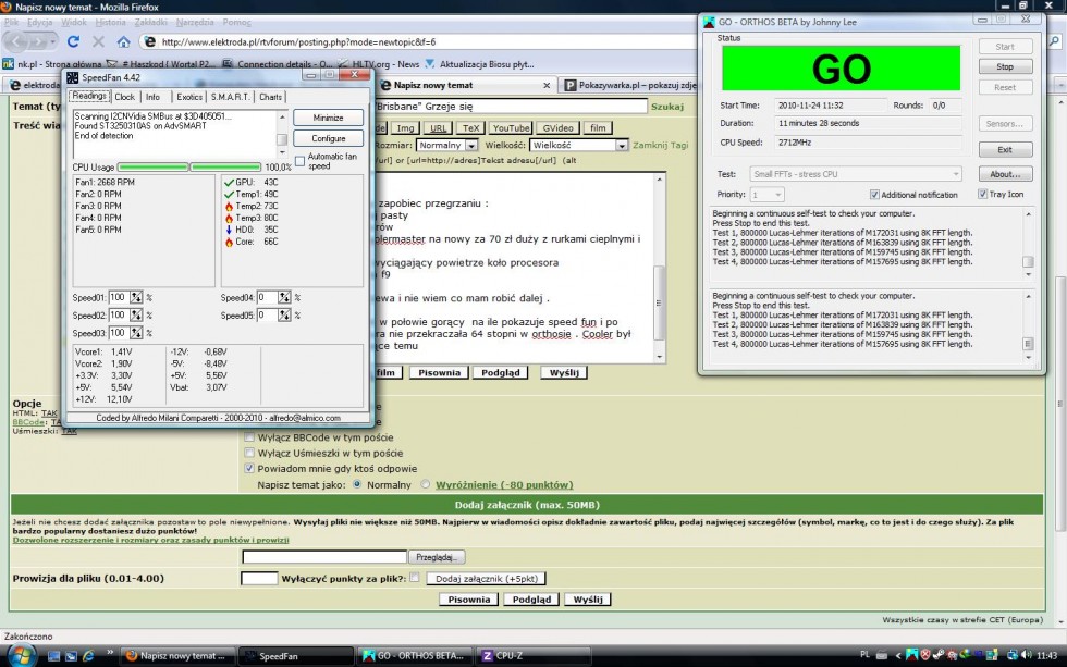 Procesor strasznie się grzeje w pełnym obciążeniu . Temperatura w spoczynku to 32/37 ale jak juz włącze orthosa to po 3 minutach dobija do 80