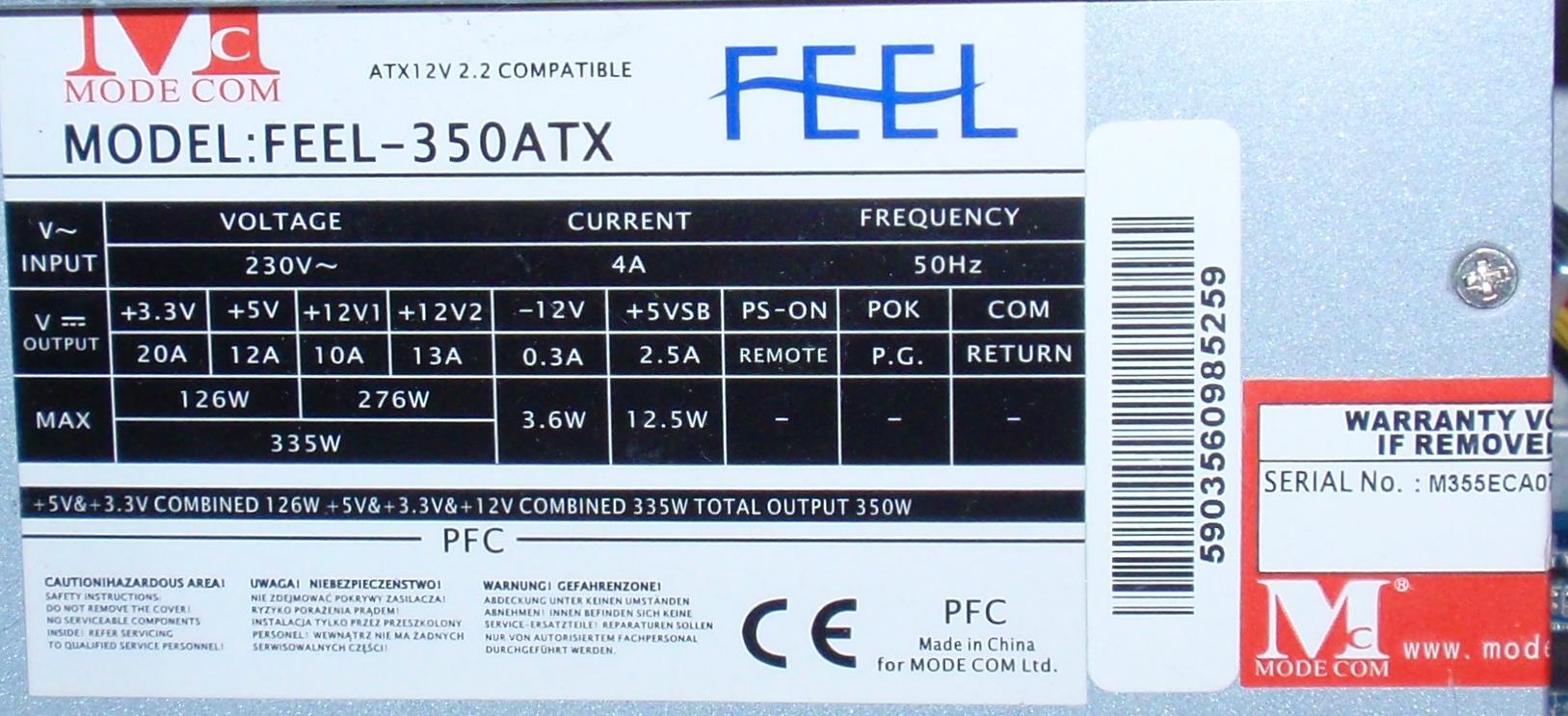 Chciałbym moją kartę graficzną Asus GeForce 8600GT 512MB DDR3/128bit TV/DVI PCI-Express (Silent) (EN8600GT Silent/HTD/512) zamienić na odrobinę nowszą. Np. GeForce 8800GTS 640MB DDR3 lub jakąś GeForce 9800. Problem w tym, że nie wiem czy mój zasilacz wytrzyma zmianę karty, czy się coś nie spali, nie sypnie z nadmiernego przeciążenia. Oto jaki mam zasilacz: