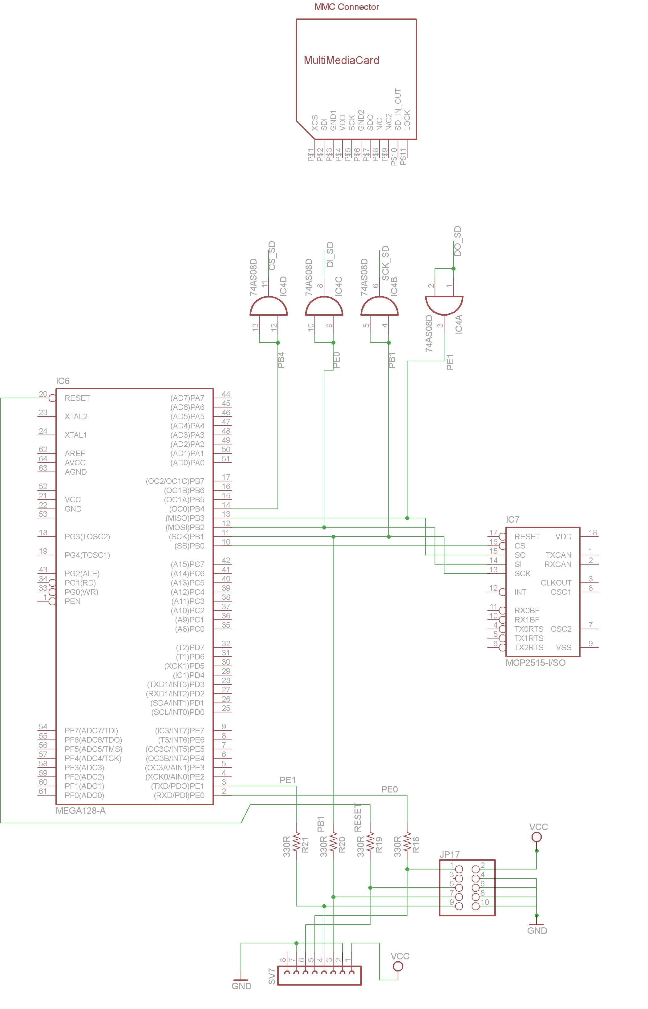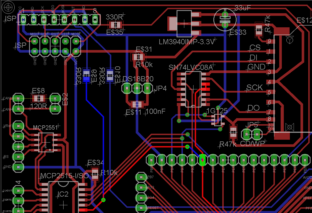 Do magistrali SPI mam podpięty programator jak w temacie, kontroler CAN MCP2515 i adapter kart SD.
