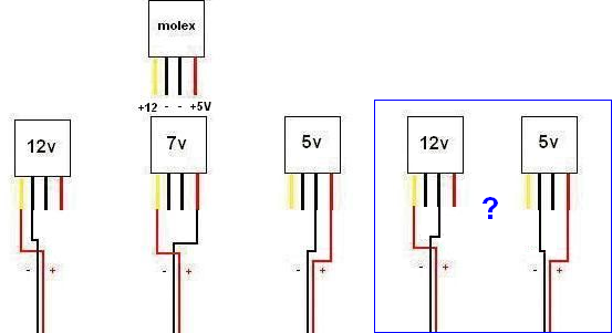 Przez przelacznik -> konwerter -> katode -> do masy molexa beda szly 2 rozne napiecia 12V i 5V i tu pojawia sie moje pytanie - Czy 2 masy molexa dotyczą jednej linii 12V a druga linii 5V czy jest to masa wspolna i czy napiecia 12V i 5V moga byc odprowadzane do jednej linii masy ?