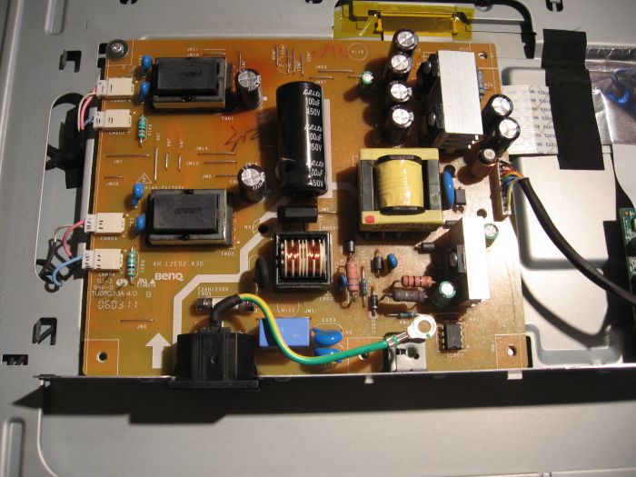 Witam. Posiadam inną wersję tego monitora z 2006 roku (patrz załączone zdjęcia), bo nie mogę nigdzie znaleźć do niego odpowiedniego schematu. Napięcia z zasilacza: 3,3V, 5V, 17V spadające do 14,6V po wymuszeniu załączenia świetlówek. Świecą przez ok 15 sekund, po czym gasną - są to objawy z odłączoną wtyczką od płytki sterującej i wydaje mi się, że nie ma powodów by się do tego czepiać.