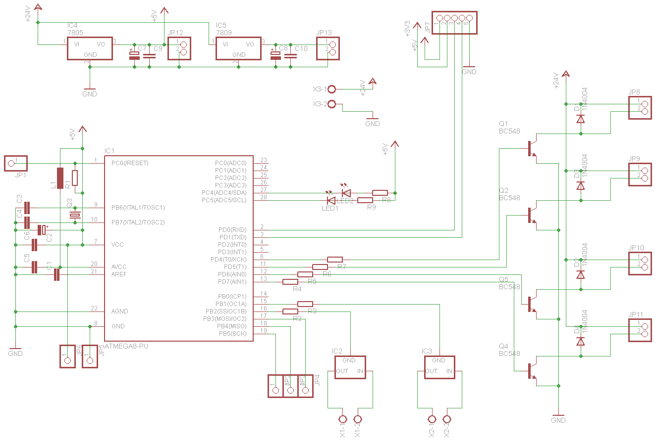 R2 i R3 są zastąpione zworami, IC2 i IC3 są podłączone dobrze, wg pdfa, opis wyprowadzeń z innego układu w tej samej obudowie.