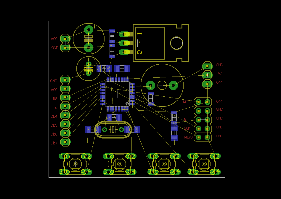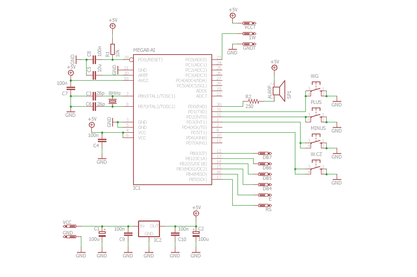 TestPad => Kondensator 100uF => Stabilizator => Vcc Uc => Kondensator 100 uF => Kondensator 100nF