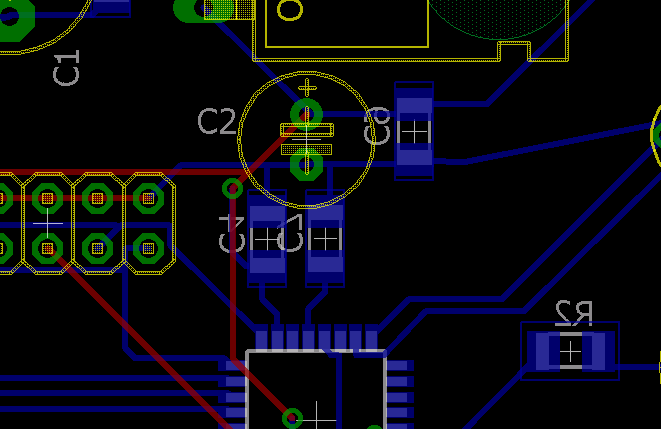 Elektrycznie niby nie ma różnicy, jednak prąd ma przebieg bezpośrednio ze stabilizatora do Uc a nie przez kondensator tak jak chce. Jak takie sytuacje kontrolować, lub o czym należy pamiętać przy tworzeniu schematu ?