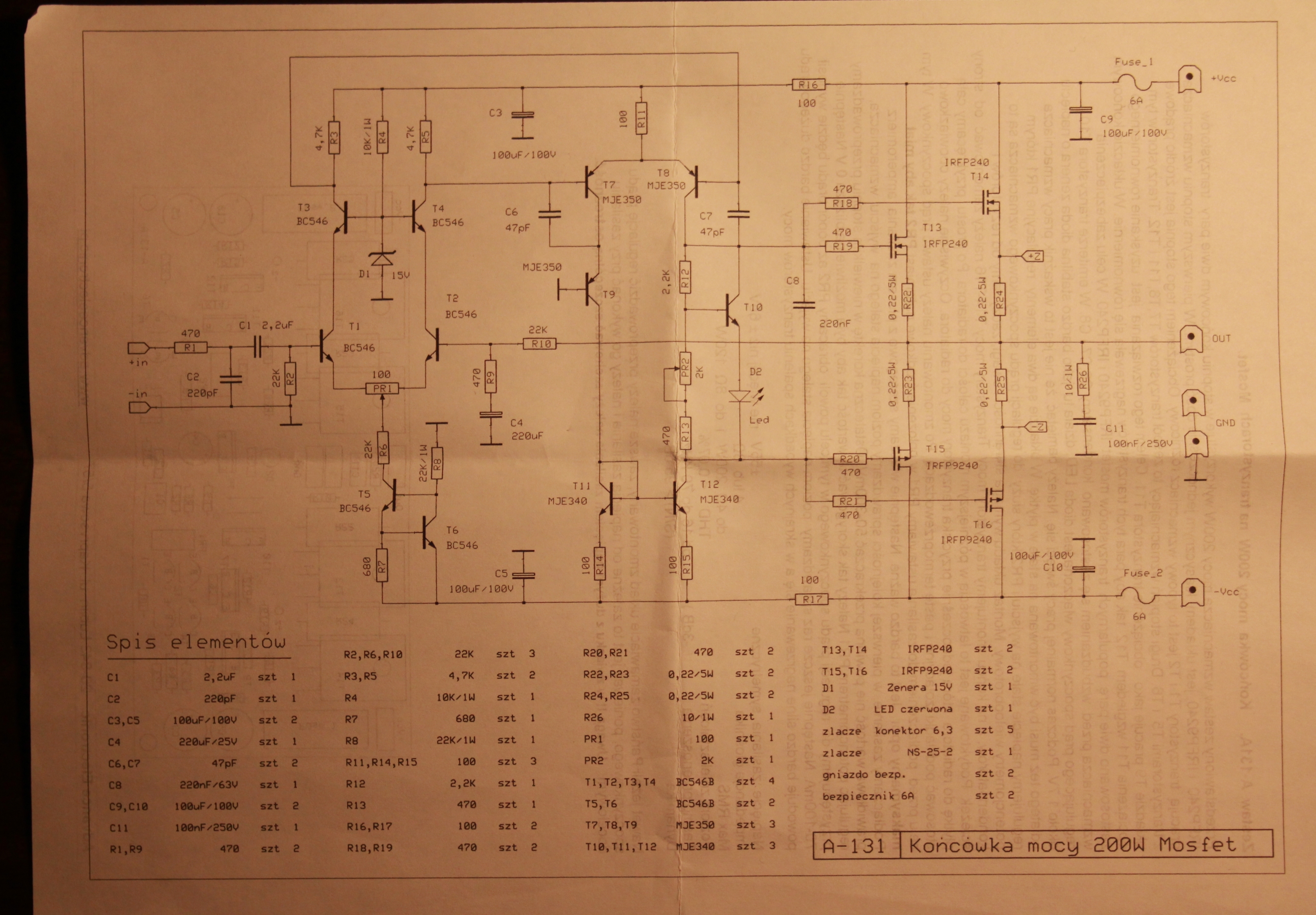 Zakupiłem płytkę wzmacniacza audio na mosfetach o mocy 200W RMS (A-131).