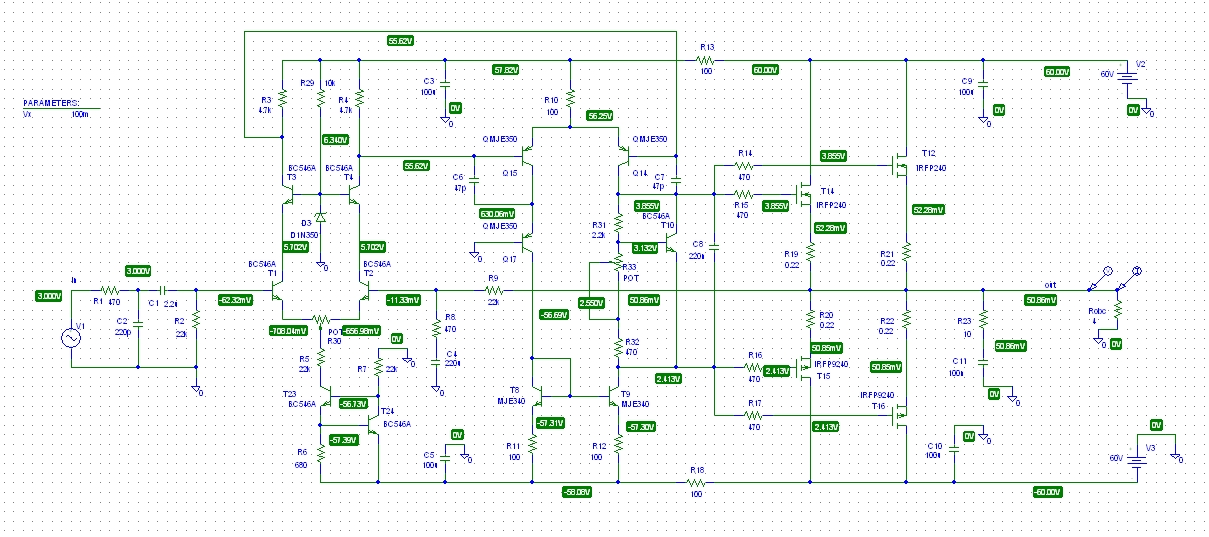 Potrzebuję symulację tego układu w pspice. A konkretnie schemat jest złożony, jednak parametry tego zasymulowanego układu znacząco odbiegają od tych teoretycznych, na przykład moc wyjściowa układu.