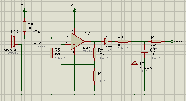 Schemat składa się z mikrofonu elektretowego na wejściu, wzmacniacza operacyjnego mającego naładować kondensator C1, jedynie z dodatnich połówek napięcia. Zadaniem procesora jest natomiast cykliczne rozładowywanie kondensatora C1 (PX, output, 0) i pomiar czasu jaki zajmuje przejście wejścia PX ze stanu 0 do 1 (Px, input, high imped.).