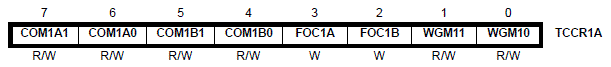 TCCR1A = 0b10000001;