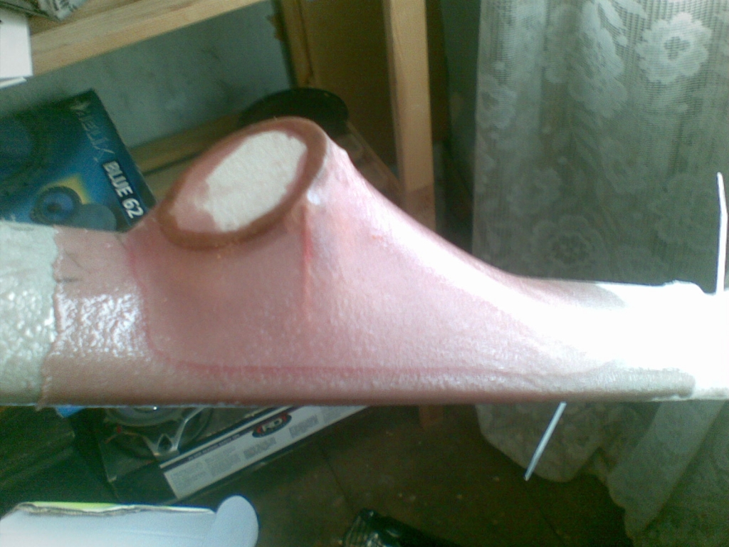 Po wyschnięciu żywicy nałożyłem szpachlę z włóknami aby konstrukcja nabrała dodatkowej sztywności.