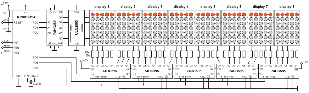 Ludzkie oko potrzebuje odświeżania powyżej 60Hz aby nie było widać mrugania , współczynnik wypełnienia dla wyświetlacza z tego schematu to 1/40 czyli zaledwie