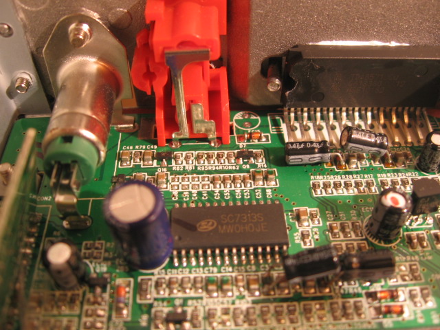 Przełącznik źródła dźwięku, regulatory barwy i balansu realizuje układ SC7313S, katalogowe parametry są dość przyzwoite.
