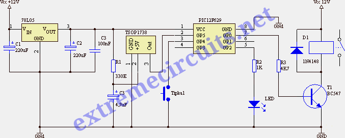 Oryginalny projekt znajduje się na http://www.extremecircuits.net/2010/11/ir-onoff-switch-using-microcontroller.html