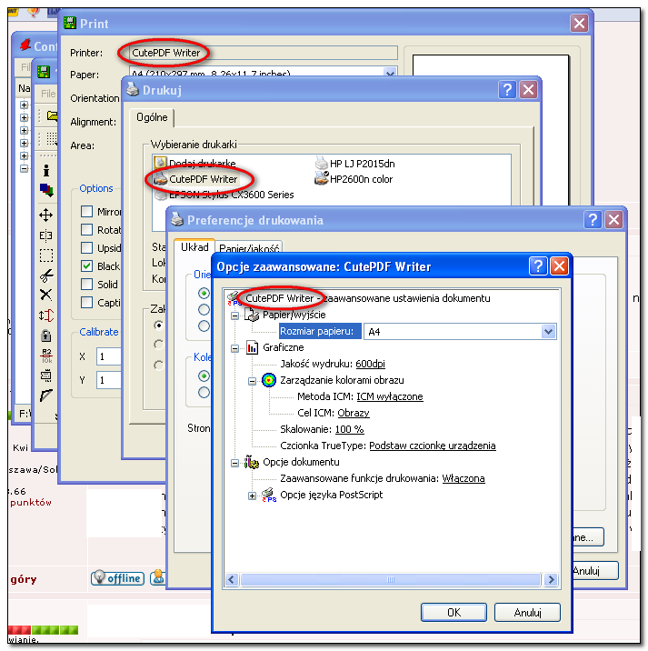 Ja drukuję na 3 sposoby (w zależności jaki mi akurat pasuje):